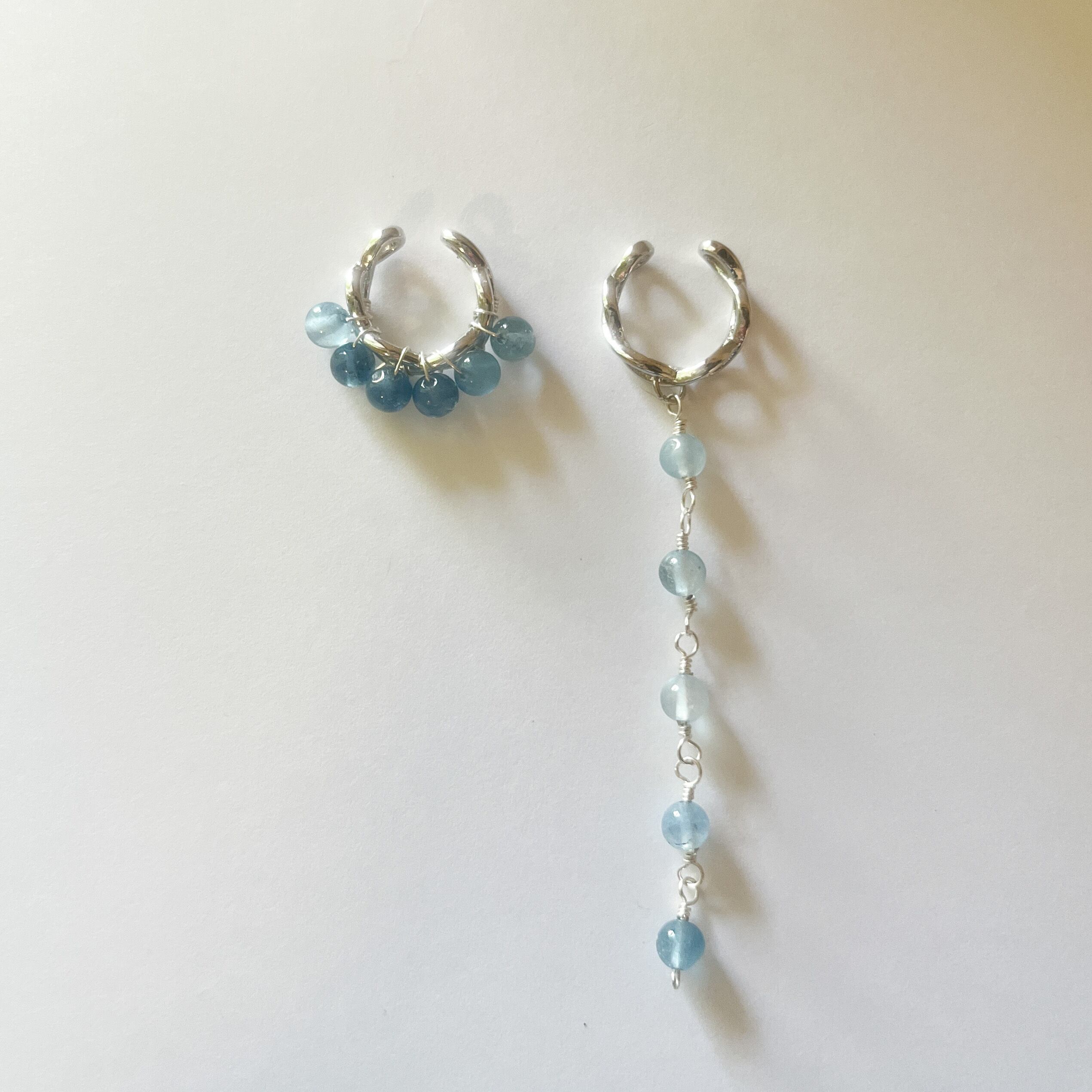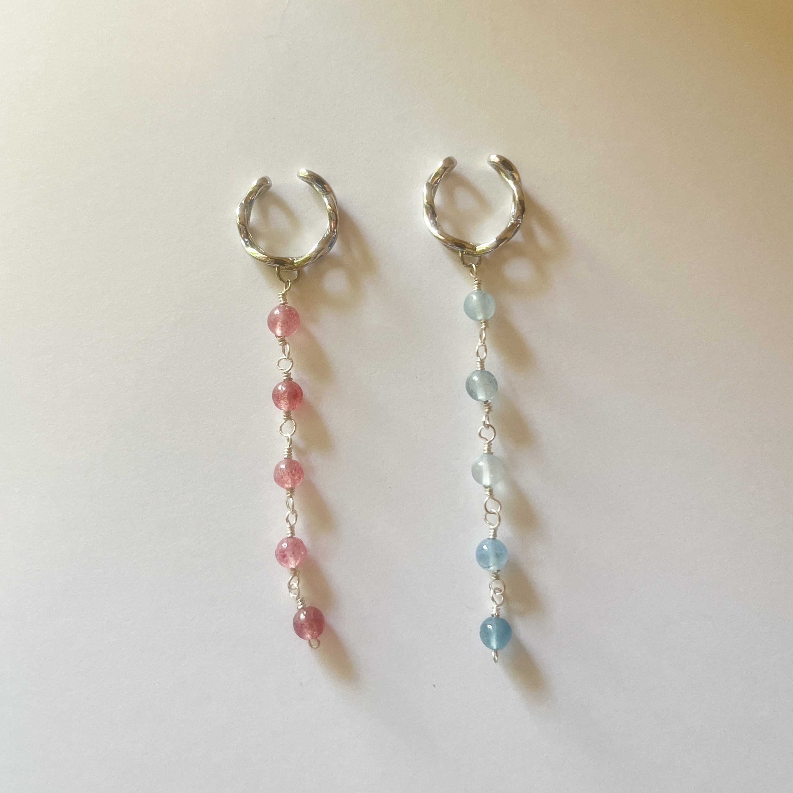 ラウンド型の天然石を縦に連ねたイヤーカフです。