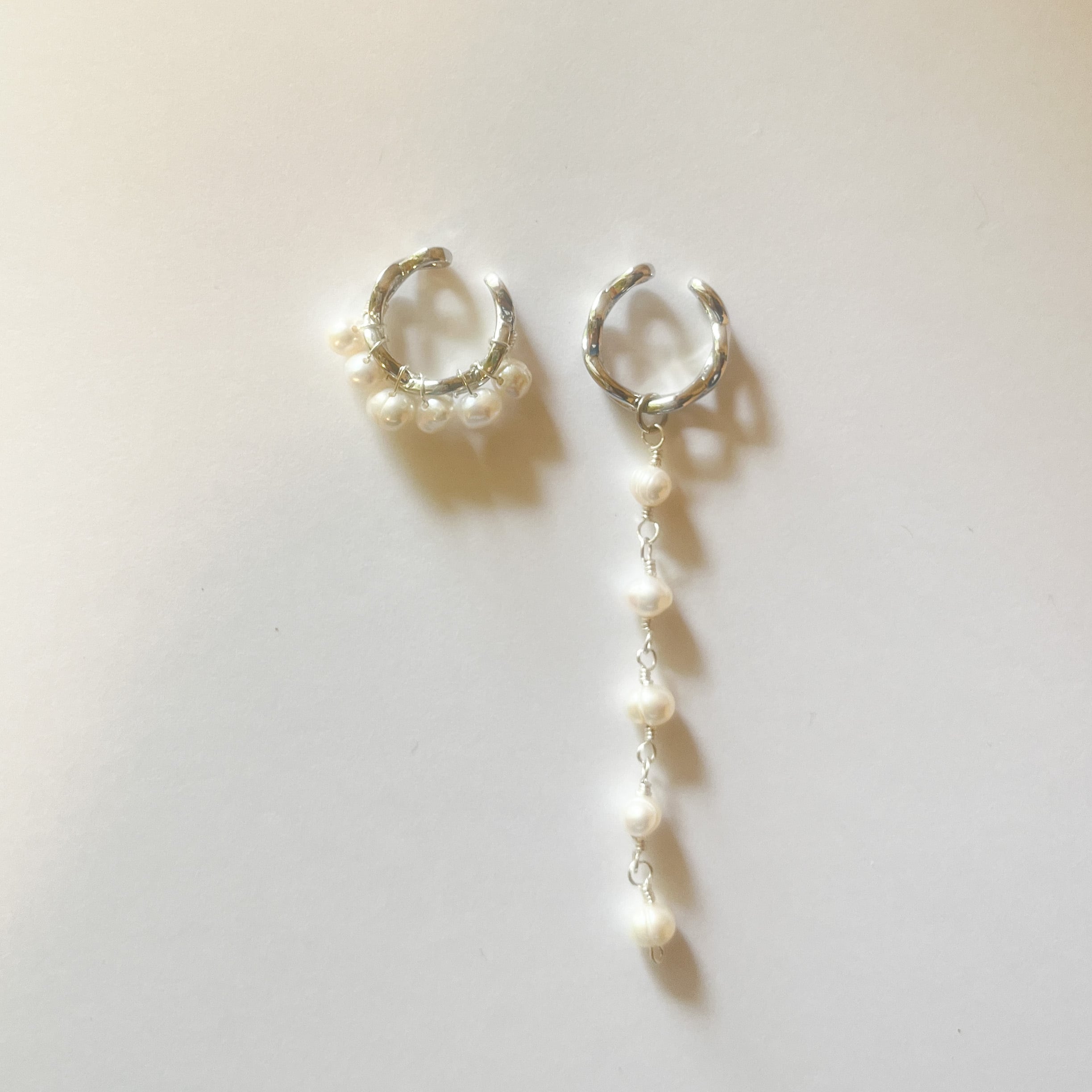 ポテト型の淡水真珠が耳に沿って並ぶようにワイヤーで仕立てたイヤーカフです。