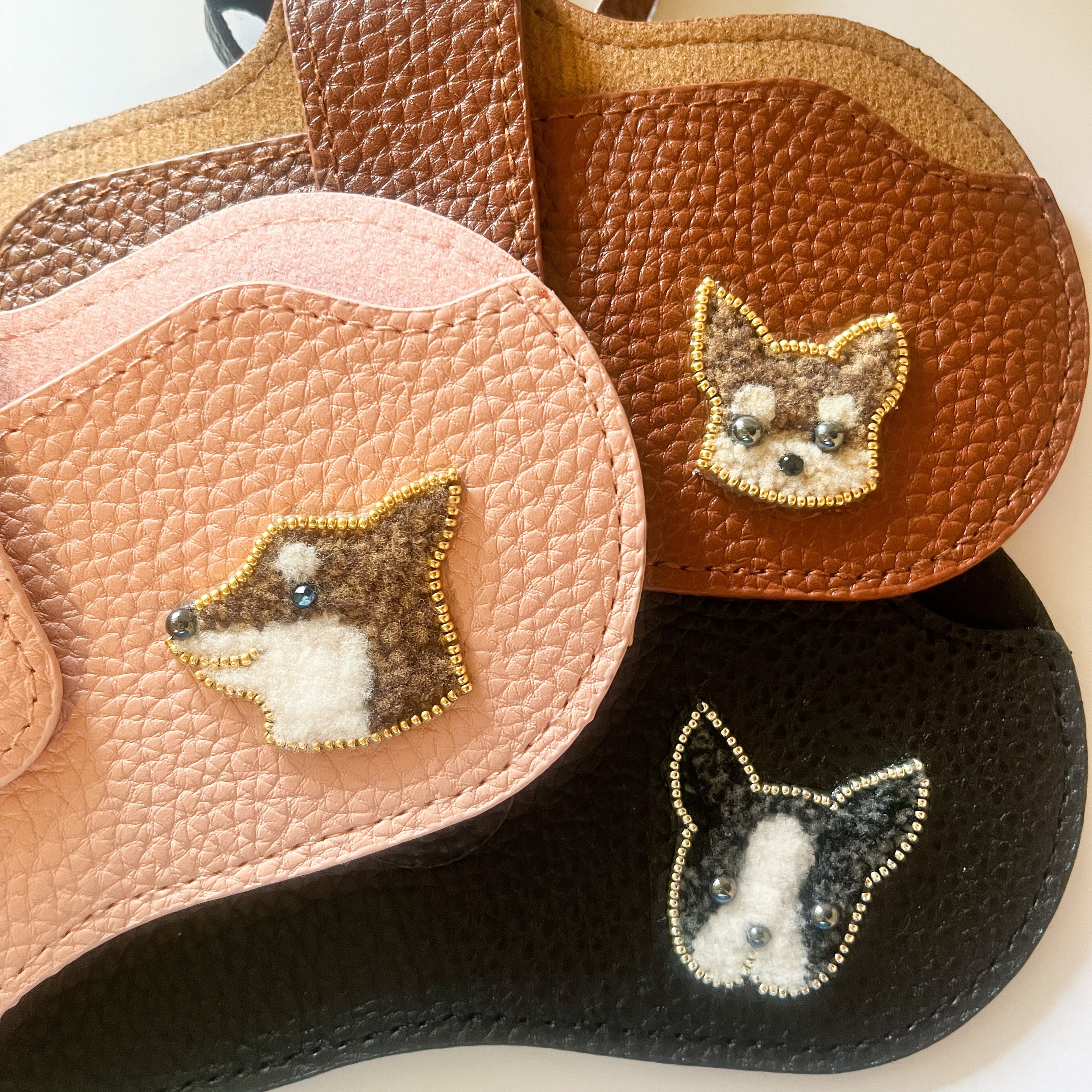 ふわふわの毛なみをイメージして刺繍したDogモチーフのメガネケースです。